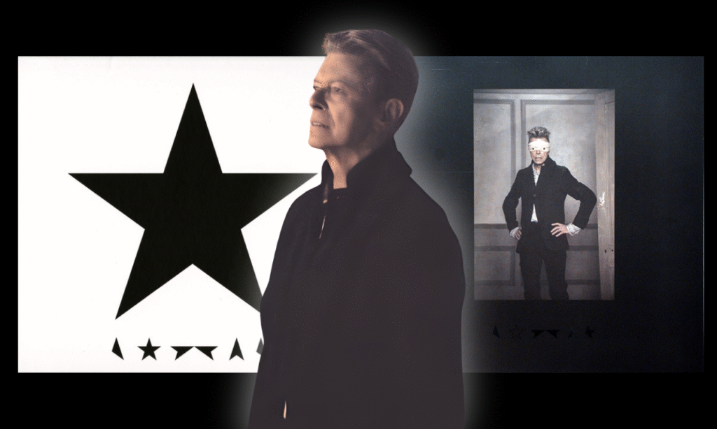 Die Musikvideos von den Songs Blackstar und Lazarus unterstützen diesen Charakter, insbesondere nach Bowies Tod. Das zweite zeigt den Musiker in einem kalten Krankenhausbett und mit verbundenen Augen. Dazu der Satz “Look up here, I’m in heaven“. Rückblickend wird vieles als bewusste Inszenierung seines eigenen Todes interpretiert.
