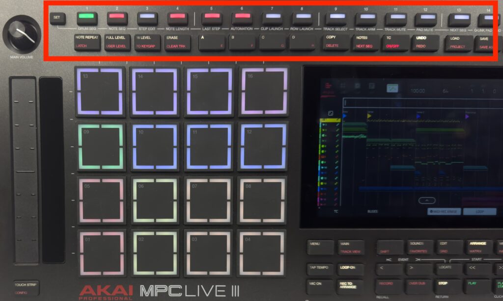 Zum ersten Mal in der MPC-Historie gibt es einen dedizierten Step-Sequencer mit 16 Tasten. Dieser erlaubt die schnelle Programmierung von Drums und Melodien, ohne das Touchdisplay bzw. die Pads bemühen zu müssen.