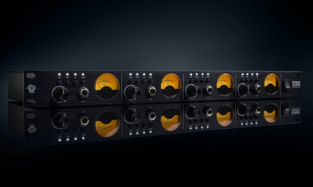Die Eingangsstufe verstärkt das Signal neutral, während der Cinemag Transformer dem Klang eine dezente Färbung verleiht.Im Vergleich zur Vorgängerversion verfügt der Auteur Quad2 über mehr Gain. Alle Kanäle sind mit VU Meters ausgestattet. Die Front-Panel Inputs akzeptieren sowohl Instrument- als auch Line-Level Signals und erhöhen die Flexibilität des Geräts deutlich.