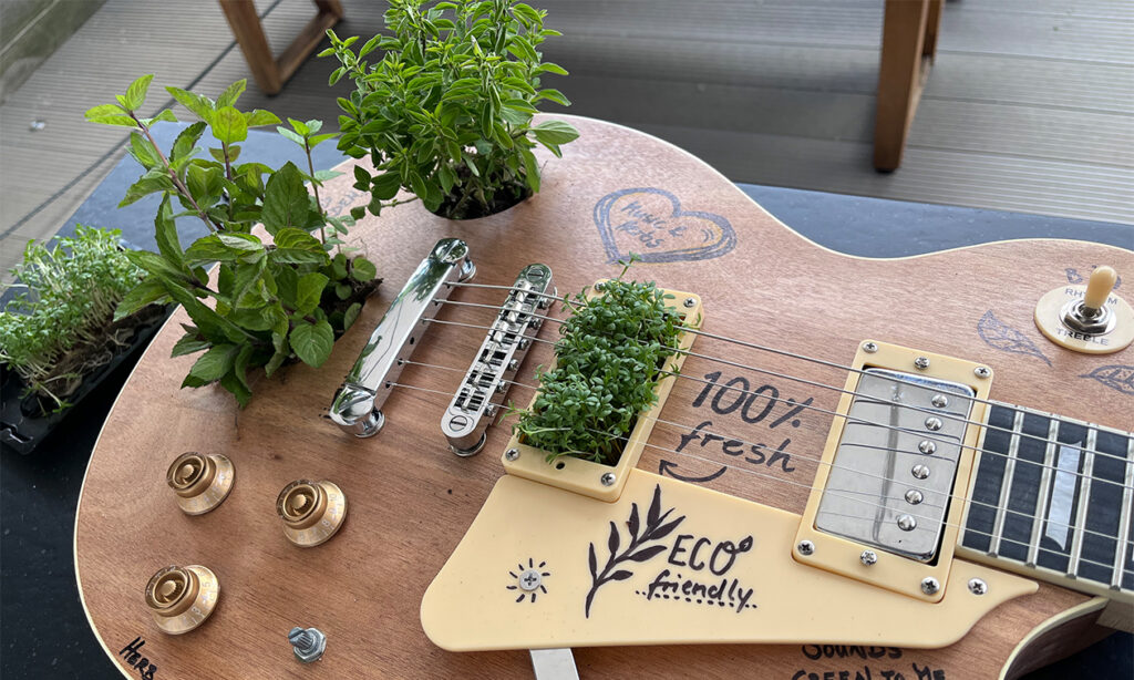 Bevor es zum Soundcheck kam, schnellte ein Gedanke sofort ins Bewusstsein: “Gut klingen können doch die anderen Gitarren – aber gut riechen – welche kann das denn schon von sich behaupten.” Der Sound war also nicht das wichtigste an dem ganzen Projekt. Vor allem die Kresse hat die Töne stark gedämpft. Mit Verstärker ging es dann aber ganz gut. Seht und hört selbst: