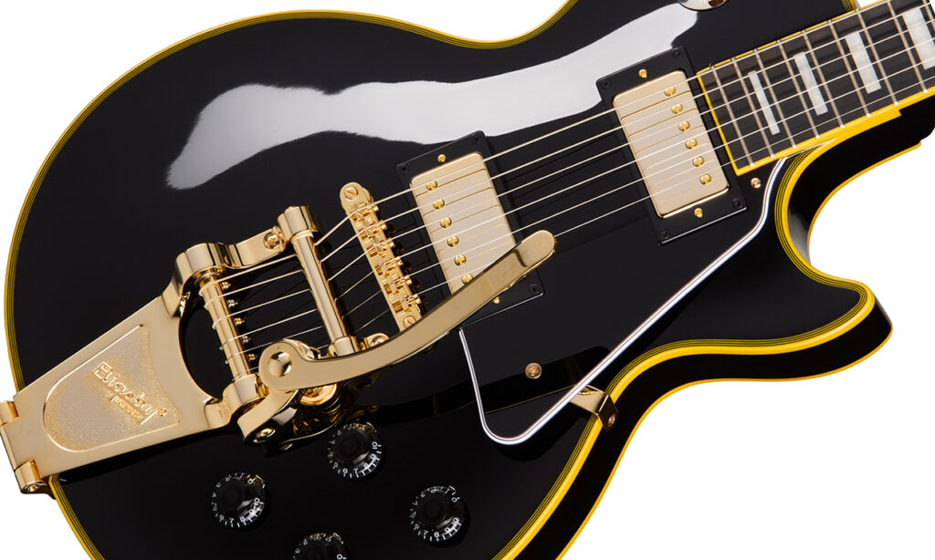 Mit der Epiphone Joe Bonamassa ’59 Les Paul Custom präsentieren die Gitarrenikone und der Hersteller aus Nashville eine erschwingliche Variante der legendären Les Paul Custom – mit einigen besonderen Merkmalen. Das seltene Original von Bonamassa stammt aus dem Jahr 1959 und ist mit einem Bigsby-Vibratosystem ausgestattet. Außerdem verfügt es lediglich über zwei statt der üblichen drei Humbucker. Nun ist dieses außergewöhnliche Instrument in limitierter Auflage als Reissue bei Epiphone zu einem attraktiven Preis erhältlich.