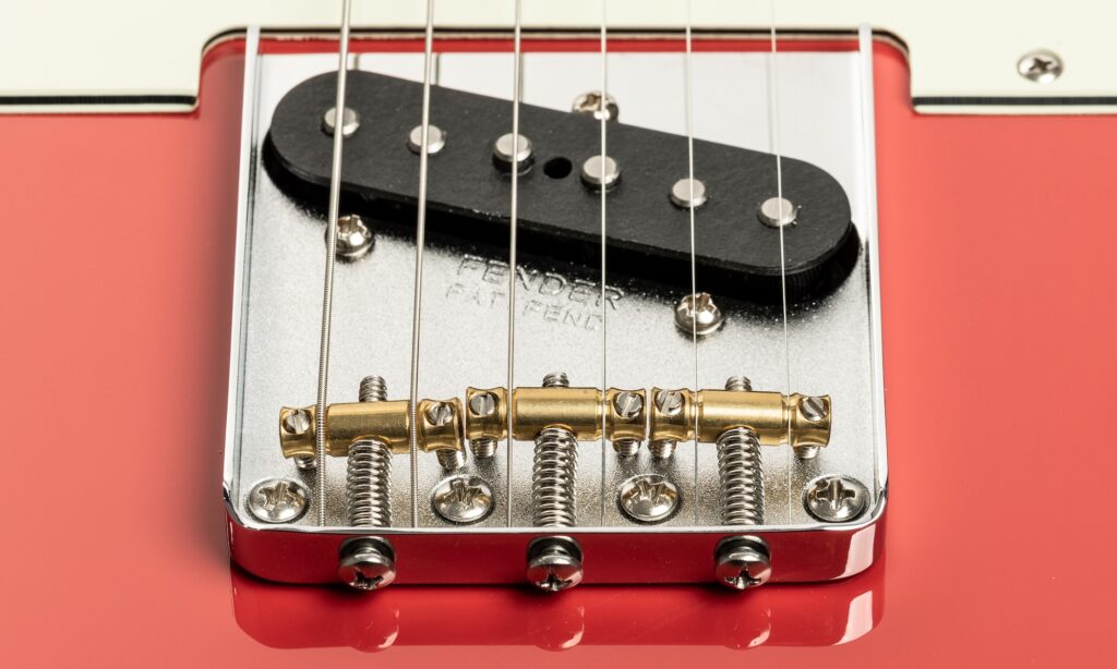 Die klassische Kopfplatte ist mit gestaggerten Fender Classic Gear-Mechaniken sowie einem Sattel aus synthetischem Knochen ausgestattet. Bei der Hardware setzt Fender auf einen Vintage-Style Tele-Steg mit drei eingekerbten Messingreitern, wobei die Saitenführung durch den Korpus erfolgt. Zum Lieferumfang gehören ein Gigbag sowie ein Inbusschlüssel.