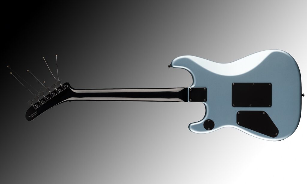 Die komplett schwarze Hardware besteht aus einem stimmstabilen, unterfrästen Gotoh GE1996T – einem Floyd-Rose-lizenzierten Vibratosystem mit Feinstimmern und besagtem Klemmsattel. Hinzu kommen geschlossene Klemmmechaniken, die ebenfalls von Gotoh geliefert werden.