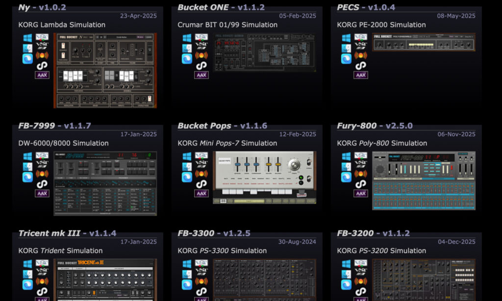 Wenn es nach den Downloadzahlen geht, ist der FB-7999 alias Korg DW-8000 sehr gefragt, kurz gefolgt von FB-3300, Tricent Mk III und Fury-800 – das sind die Clones von Korg PS-3300, Korg Trident und Korg Poly-800.