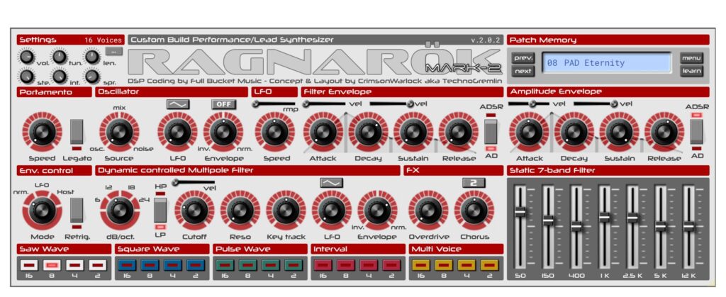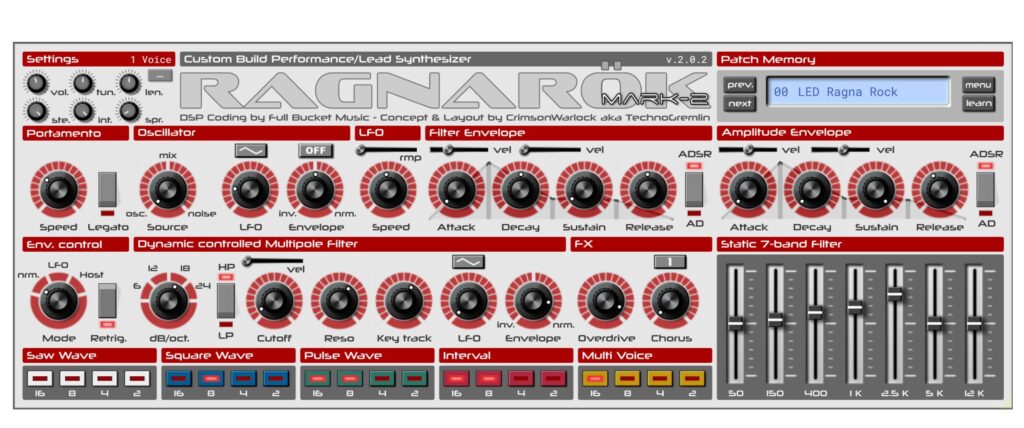 Hans Peter Willems baute sich Anfang der 80er Jahre seinen eigenen monophonen Hardware-Synthesizer, der speziell für den Bühneneinsatz konzipiert war – und den Namen Ragnarök trug. Über das KVR-Forum suchte er viele Monde später nach einem Programmierer, der daraus ein Plugin machen sollte. So kam es zur Zusammenarbeit mit Full Bucket Music.