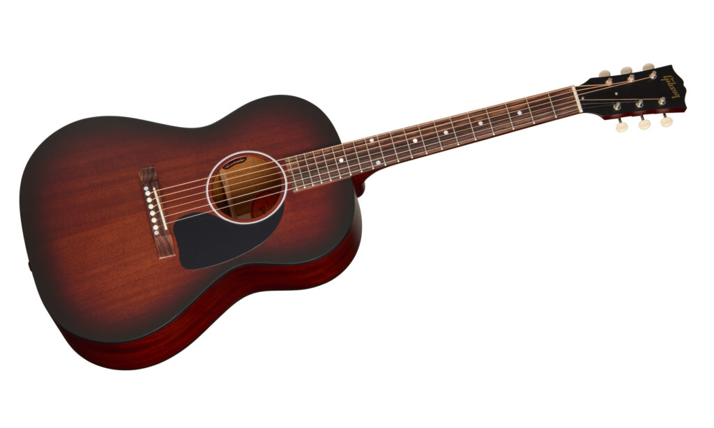 Der Mahagonihals verfügt über ein rundes Profil und ist mit einem Palisandergriffbrett ohne Binding versehen. Darauf finden sich 20 Standardbünde mit Perlmutt-Dot-Inlays. Auch der rechteckige Steg besteht aus Palisander. Dazu gibt es Grover-Mechaniken und ein schwarzes Schlagbrett. Gibson empfiehlt die kleinere Gitarre für Folk, Blues und Fingerpicking-Techniken.