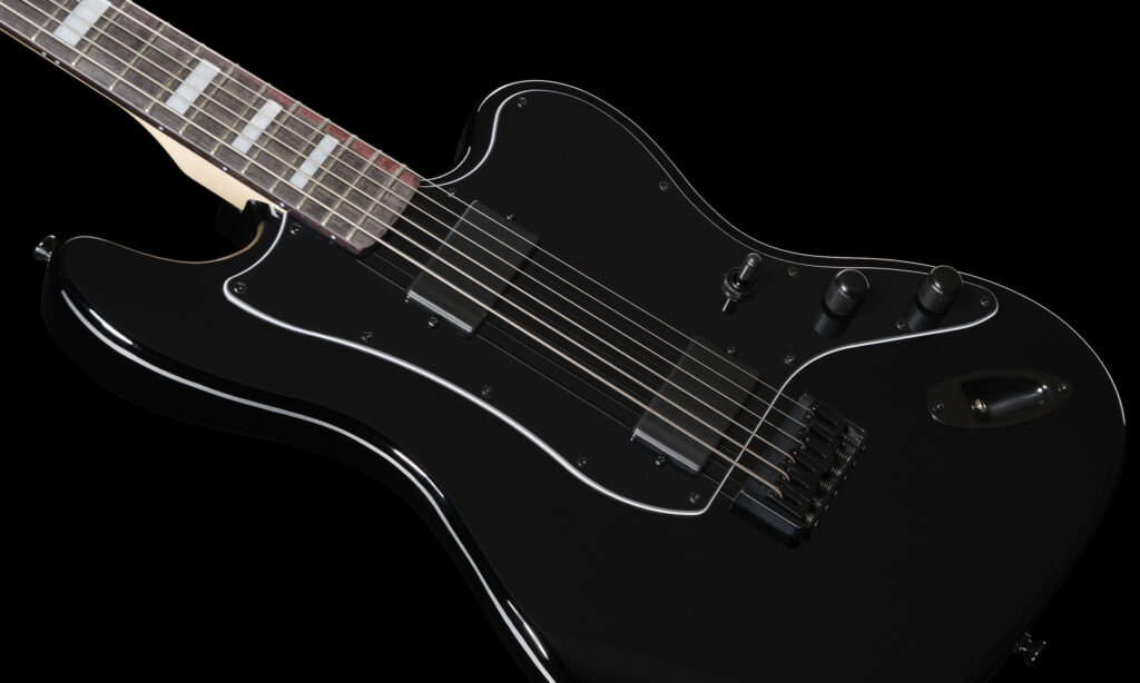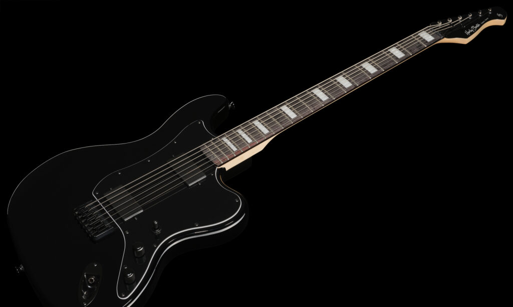 Mit der Harley Benton JA-Baritone HH BK erweitert die Thomann-Hausmarke für Gitarren die JA-Gitarrenreihe um ein rabenschwarzes Baritonmodell mit Humbucker-Bestückung. Die JA-Baritone mit doppelter P90-Bestückung, seit 2022 etablierter Bestandteil der Vintage-Kollektion, erhält also Zuwachs. Mit einer Mensur von 30 Zoll bleiben die Saiten bei tiefen Stimmungen angenehm straff, was artikulierte Sounds in Aussicht stellt. Ein Offset-Instrument für Spezialisten, das auch in der Humbucker-Variante unglaublich erschwinglich ausfällt.
