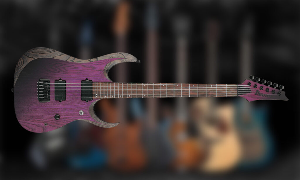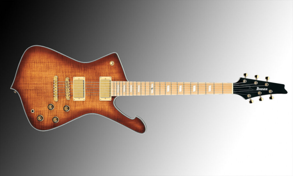 Ibanez kombiniert hier einen Lindenkorpus mit fünfteilig verschraubten Hälsen aus Ahorn und Walnuss sowie breiten Ebenholzgriffbrettern. Bei der Hardware setzt der Hersteller auf den hauseigenen Monorail-G2-Steg sowie Klemmmechaniken von Gotoh. In der Elektronik kommen zwei aktive Fishman-Fluence-Modern-Humbucker mit umschaltbaren Voicings zum Einsatz – moderner Sound ist hier Programm.