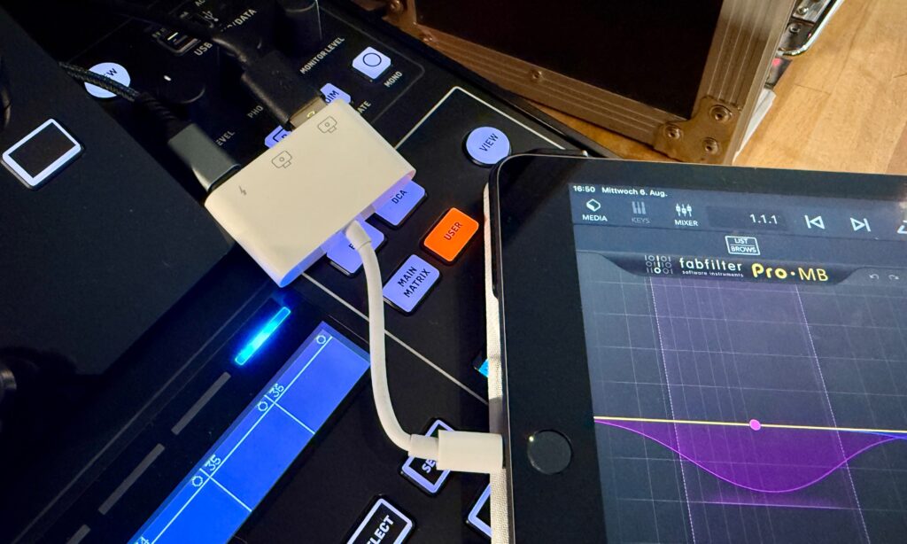 Das iOS-Betriebssystem ist darauf optimiert, Audio-Anwendungen Priorität zu geben – Hintergrund-Apps werden automatisch pausiert, um Dropouts zu vermeiden. Für maximale Stabilität solltest du vor jedem Konzert das iPad neu starten und alle anderen Apps schließen. Aktiviere den “Nicht stören”-Modus und deaktiviere WLAN, falls nicht benötigt. Ein externes USB-C-Netzteil verhindert Akkuprobleme während langer Shows. Vorzugsweise nutzt man originale Apple-Lightning- oder USB-C-Hubs, die zum einen die USB-Verbindung zum Mixer herstellen und zum anderen über einen zweiten Port das iPad über ein externes Netzteil aufladen. Damit funktioniert auch ein Dauerbetrieb.