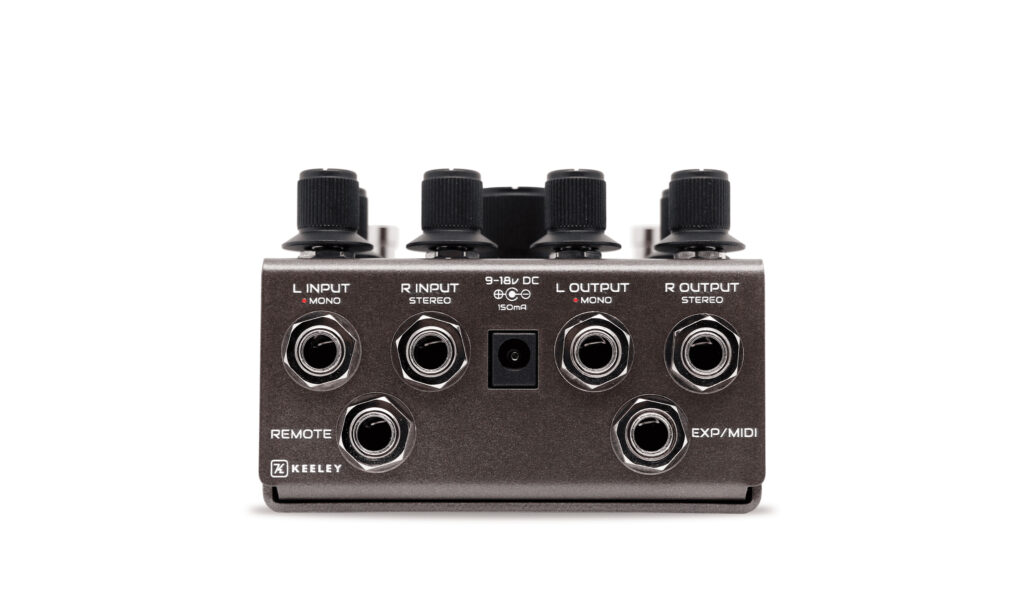 In der Pedalversion von Keeley gibt es gleich mehrere Neuerungen, die die Funktionalität signifikant aufwerten sollen. So ist das Keeley RK2000 Funk Siren Delay komplett in Stereo ausgeführt und erlaubt somit Ping-Pong-Effekte. Dazu bietet die Schaltung fünf Speicherplätze am Gerät beziehungsweise 128 über die MIDI-Funktion (TRS-Buchse). Gleichzeitig sind sämtliche Parameter über MIDI fernsteuerbar und entsprechend präzise aus der DAW zu automatisieren.