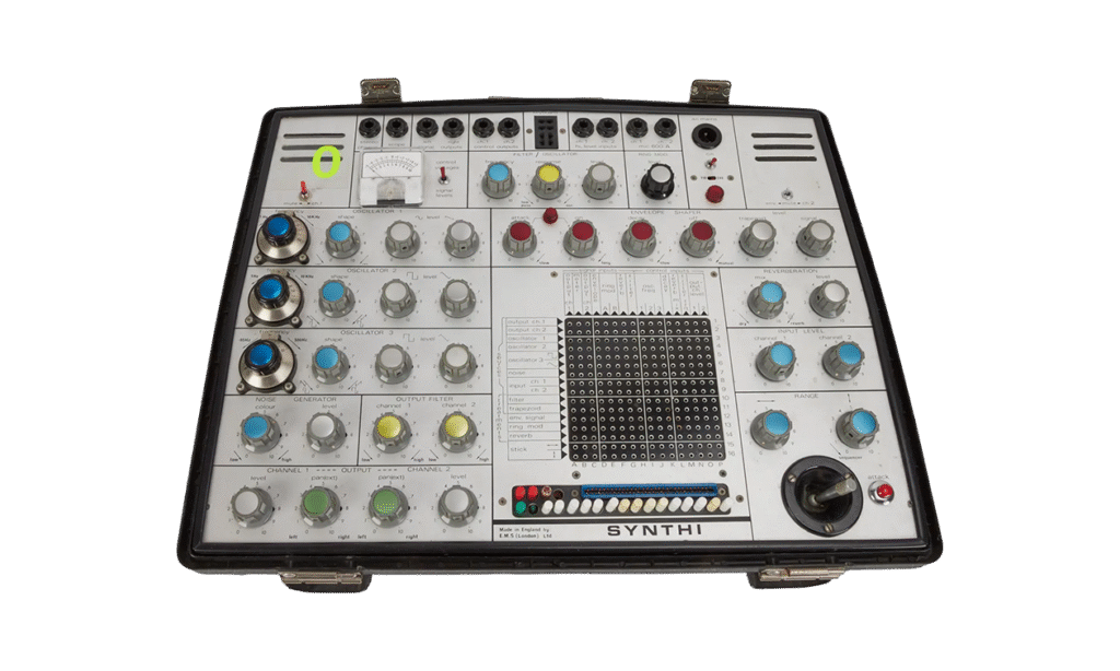 Laut Nachlass war der EMS Synthi AKS Koffersynthesizer aus den frühen 1970er Jahren der erste von Kraftwerk um 1972 erworbene Synthesizer und der einzige EMS Synthi, den Schneider besaß und im Kling-Klang-Studio nutzte. Der kompakte Analogsynth wurde auch bei der Produktion von Autobahn (1974) eingesetzt. Erwartete Summe: 15.000 bis 20.000 US-Dollar.