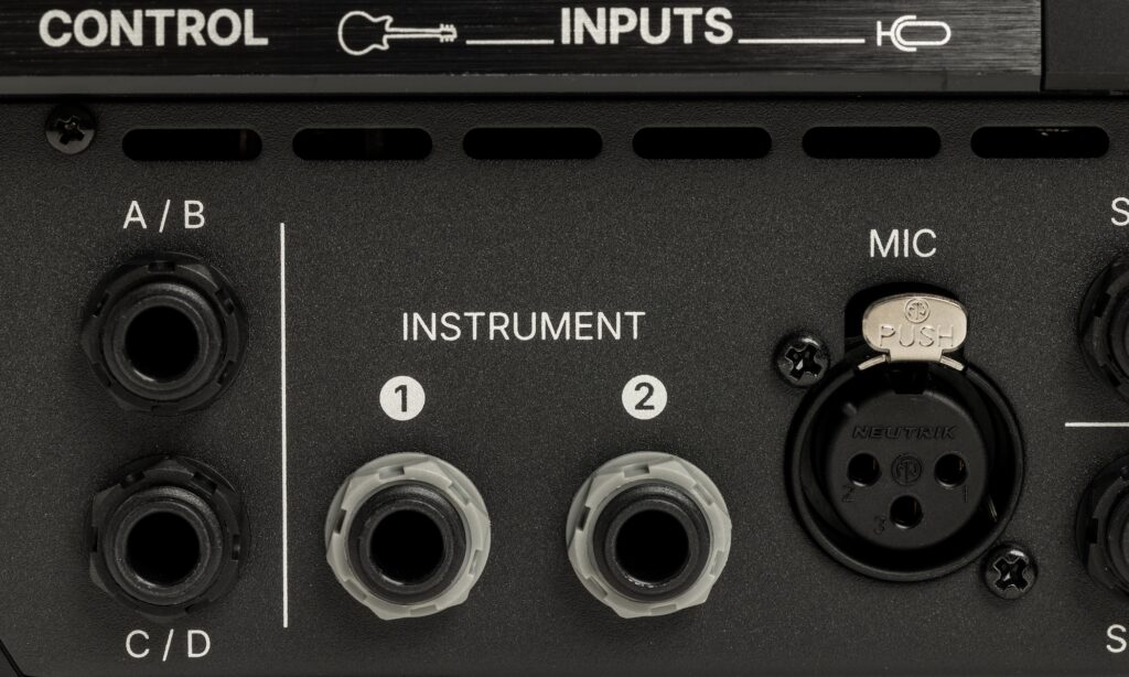 An der Rückseite sind sämtliche Anschlüsse aufgereiht. Links geht es los mit zwei TRS-Buchsen für zusätzliche Expression-Pedale oder Fußtaster. Es folgen zwei Instrumententeingänge (Klinke) und der XLR-Anschluss für ein Mikrofon. Das Helix Stadium ist in der Lage, zwei separate Signalwege zu verwalten. Wer zum Beispiel allein mit Stimme und Gitarre unterwegs ist, kann seine kompletten Sounds im Helix Stadium vorbereiten. Daneben warten die TRS-Anschlüsse der vier Effektloops auf externe Effektpedale oder die bekannte Vier-Kabel-Methode in Verbindung mit einem Gitarrenamp.