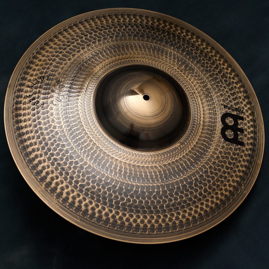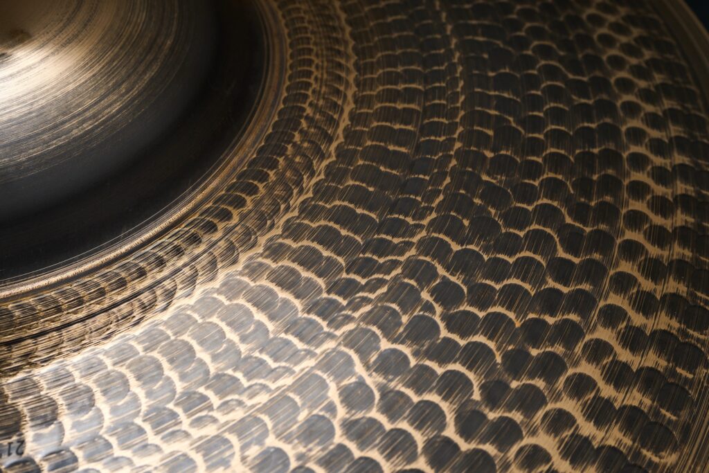 Mit 3270 Gramm ist das Teil der schweren Gewichtsklasse zuzuordnen, was wiederum die Durchsetzungskraft und den klanglichen Fokus erhöht. Davon abgesehen, fällt das Becken mit der relativ kleinteiligen Hämmerung seiner „Artgenossen“ sowie dem dunklen, aber glänzenden „Smoked Bronze“ Finish auf der Spielseite auf. Unten erstrahlt das Instrument im Hochglanz-Look.