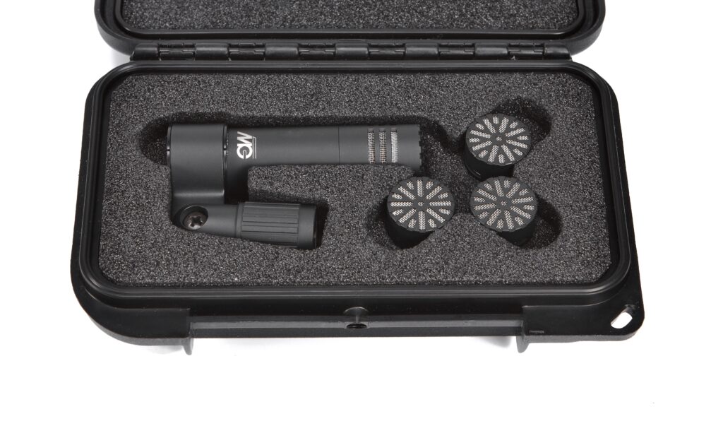 Wer sich ein bisschen mit den Produkten von MG auskennt, weiß, dass die Marke auf überflüssige Gimmicks ebenso verzichtet wie auf ausladend große Gehäuse. Das gilt für das MG M930 genauso wie für das Generation 4 System. Es setzt sich zusammen aus dem nur 5,7 Zentimeter langen Speiseteil namens MV 400 X, welches es auch als Ausführung mit Lemo-Steckverbinder gibt (MV 400 L), sowie den einzeln erhältlichen Kapseln. Zur Auswahl steht die Nierenkapsel M 40 , die Supernierenkapsel M 41 , die Kugel M 42 sowie mit der M 43 die breiter Niere. Alle Kapseln werden einfach auf das Speiseteil aufgeschraubt, die Positionierung erfolgt mithilfe der separat erhältlichen Halterung. Der Transport über ein hochwertiges, aber ebenfalls optionales Kunststoff-Case.