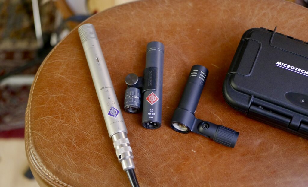 Wie zu erwarten, gibt sich das Microtech Gefell Generation 4 System im Einsatz sehr pflegeleicht. Die kleinen Abmaße und das geringe Gewicht lösen auch bei einfachen Stativen mit ausgezogenen Galgen keine Schweißausbrüche aus, auch die Präzision bei der Positionierung profitiert davon. Alle Gewinde sind absolut akkurat geschnitten und das Speiseteil sitzt fest in der Halterung. Jetzt hören wir uns zunächst mal an, wie die verschiedenen Kapseln über dem Drumset klingen.