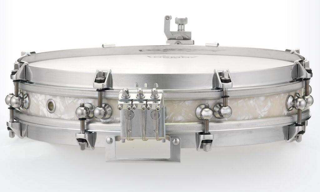 Die neue Philharmonic Pancake Snare wurde in Zusammenarbeit mit Tom Freer vom Cleveland Orchestra entwickelt. Sie misst 13“ x 2,5“ Zoll und hat einen 8-lagigen Kessel aus Ahorn. Maximale Sensibilität im kleinstmöglichen Format bei professioneller Ausstattung war hier der Anspruch. Die Trommel ist mit der Nicotine White Marine Pearl Folie bezogen und hat Single Flange Hoops.