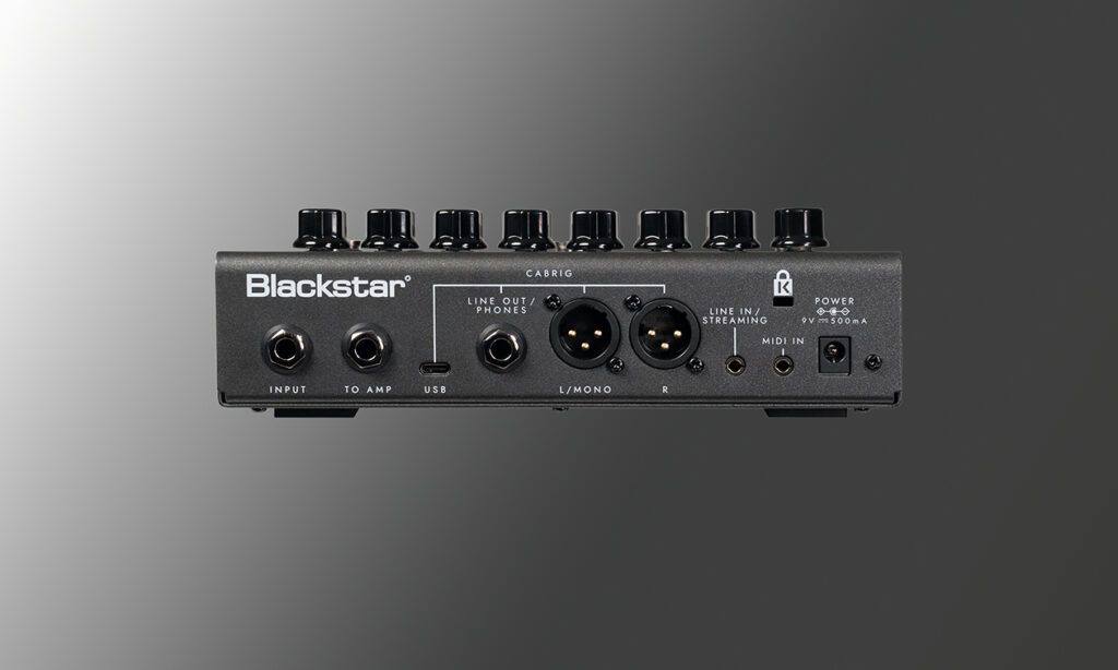 - Anschlüsse: Input, To Amp, FX Loop, Line Out / Phones, Line In / Streaming, USB-C, XLR Out, MIDI In / Thru