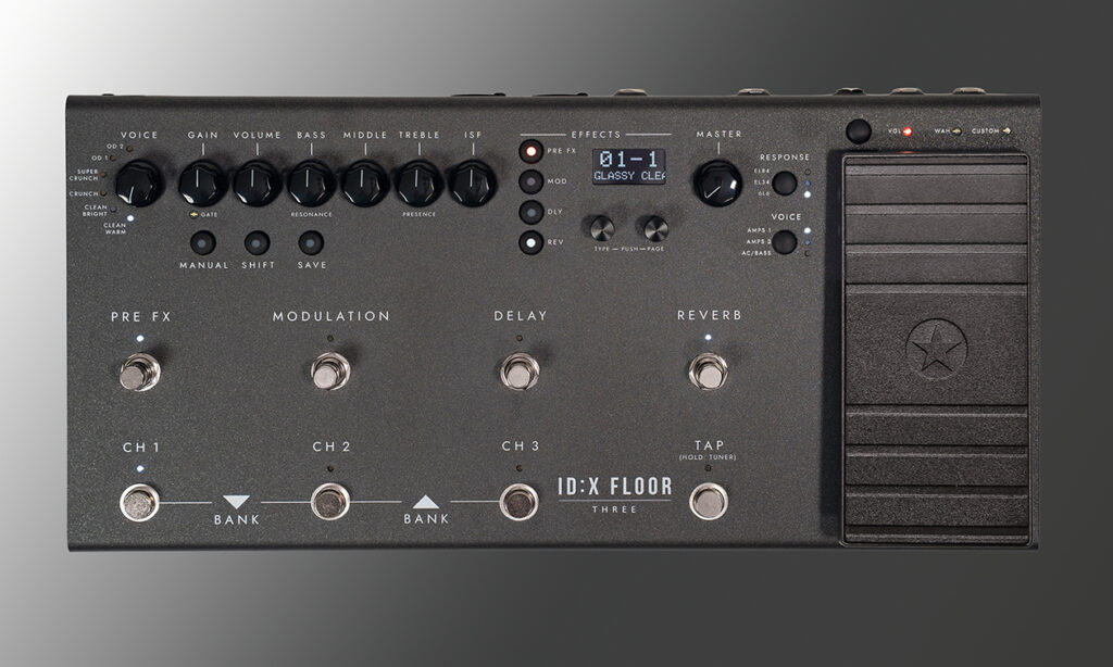 Die ID:X Floor Boards orientieren sich an den intuitiven Bedienelementen klassischer Gitarrenverstärker, bieten durch ihre Programmierbarkeit jedoch deutlich mehr Flexibilität. Über den Voice-Regler lassen sich sechs Grundsounds abrufen: Clean Warm, Clean Bright, Crunch, Super Crunch, OD 1 und OD 2. In Verbindung mit dem ISF-Regler lassen sich Klangcharaktere von amerikanisch bis britisch – und alles dazwischen – fein abstimmen.