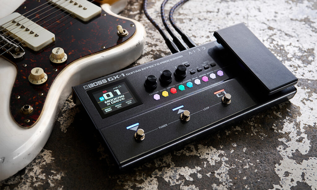Der Boss GX-1 wendet sich an Gitarristen, die am Anfang ihrer Karriere stehen oder die innerhalb eines günstigen Budgets auf Boss-Sounds zurückgreifen möchten. Das in einem Metallgehäuse untergebrachte Bodenpedal mit integriertem, konfigurierbarem Expression-Pedal soll die bewährten AIRD-Algorithmen und Effekte der Modelle GX-100 und GX-10 liefern. Geboten wird dabei eine umfassende und bewährte Auswahl an Verstärker- und Effektsimulationen.