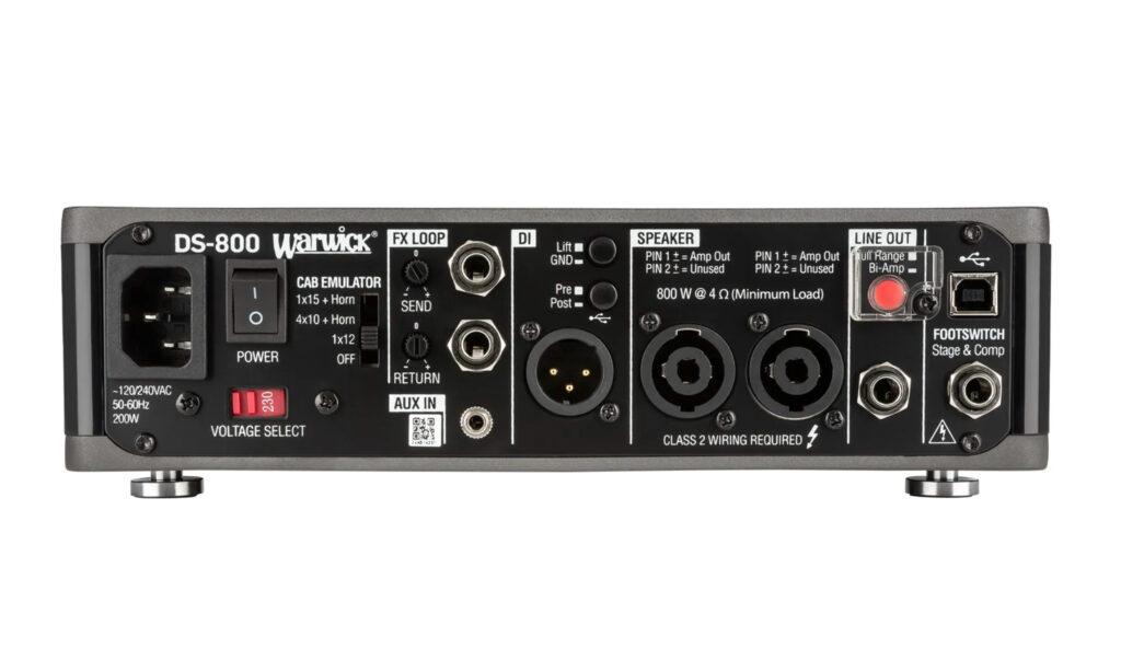 Die Warwick DS-Serie bietet zweikanalige Topteile mit jeweils eigenem Gain und 4-Band-EQ sowie integriertem Kompressor und Tuner. USB- und Bluetooth-Konnektivität, Cab-Simulation, Effektschleife, DI-Out, Aux-In, Line-Out und Bi-Amping sorgen für maximale Flexibilität. Die Modelle liefern 300, 500 oder 800 W und bleiben mit 3,3–3,6 kg extrem transportfreundlich.