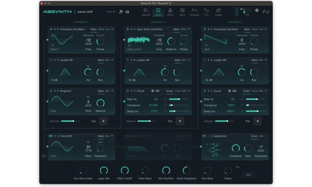 Das grundsätzliche Gerüst aus drei Kanälen (Channel A, B und C), komplexen Hüllkurven und esoterischen Effekten ist quasi unverändert. Anders könnte man die alten Presets sicherlich auch nicht laden.