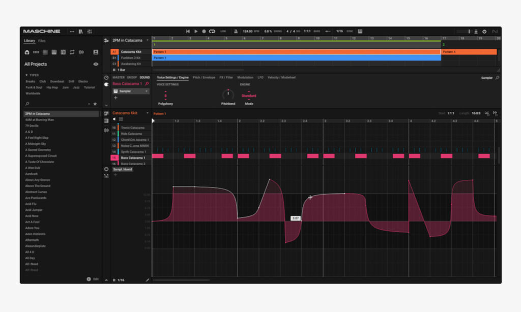 Auch die Maschine+ profitiert von dem neuen Update. Musikerinnen und Musiker, die komplexe Projekte verwalten, werden sich über die Bounce-in-Place Funktion freuen, weil sie die CPU-Auslastung von Maschine+ deutlich reduziert.