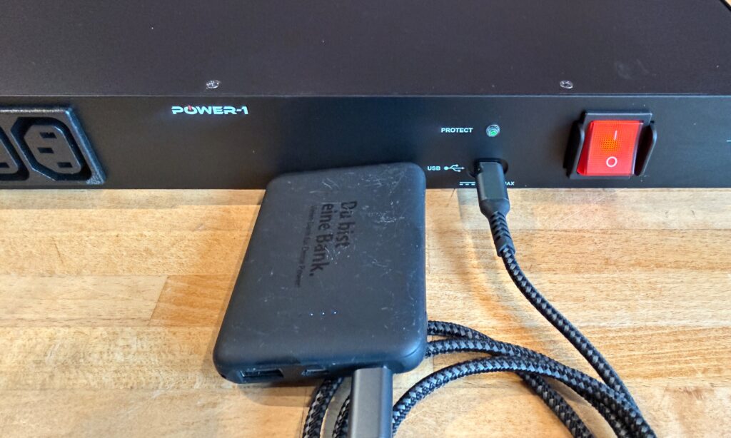 Besonders praktisch ist der USB-C-Ladeport an der Frontseite. Dieser ermöglicht das unkomplizierte Aufladen von Smartphones, Tablets oder anderen USB-Geräten direkt am Rack, ohne dass ein separates Netzteil erforderlich ist. Gerade im Studioalltag oder bei Live-Produktionen osz das ein wertvolles Feature.