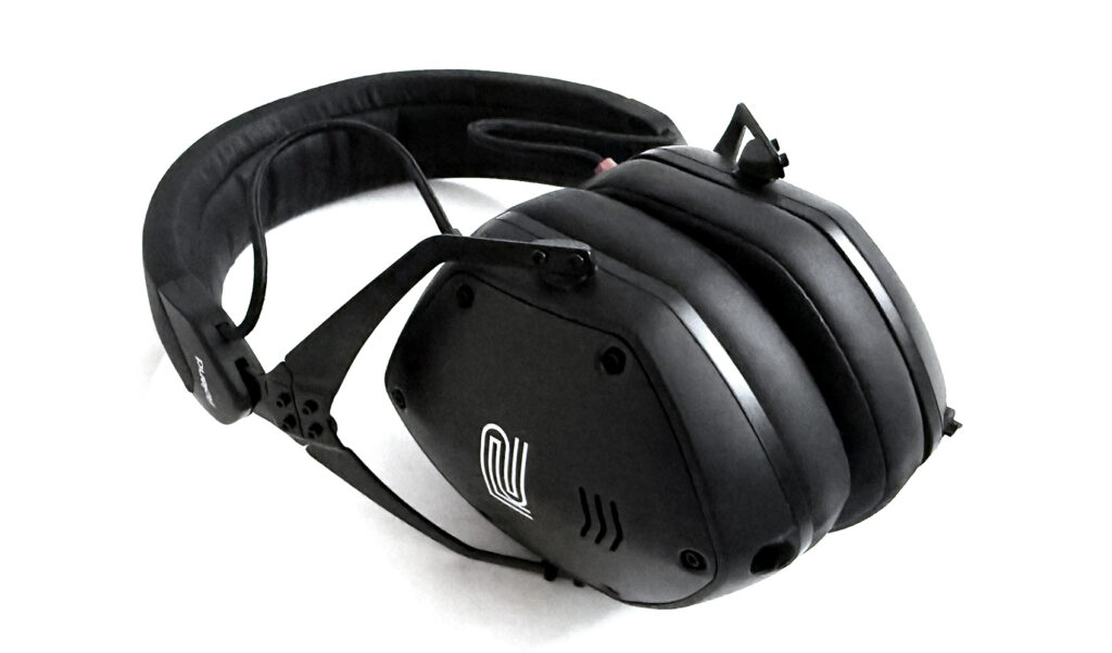 Beim VMH-S100 wird auf Metall gesetzt, etwa bei den angeschraubten Schildern und den Armen der Kapseln oder bei den Bügelverlängerungen. Dies spürt man auch bei seinen 295 Gramm Gewicht. Lediglich die Kapselrahmen und kleine Ornamente am Ende des Bügels bestehen aus Plastik. Die sehr weiche Polsterung des sehr flexiblen Kopfbands aus Stahl erstreckt sich über die gesamte Länge.