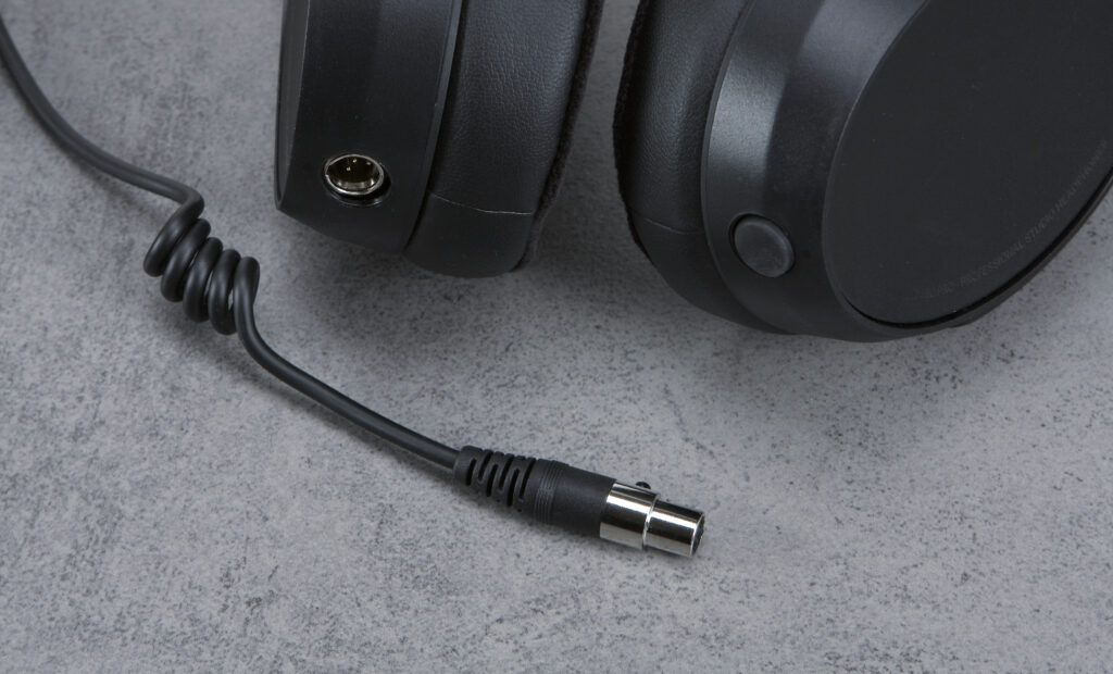 Zur Grundausstattung zählen abnehmbare und zudem waschbare Polster sowie ein abnehmbares und wahlweise links oder rechts per Mini-XLR montierbares Kabel. Hierbei handelt es sich um ein bis auf 3m dehnbares Spiralkabel, was aus meiner Sicht die optimale Ausführung für den Studiobetrieb ist, sodass ich keine weitere Kabelvariante oder Ausstattungsmerkmale zum Studiobetrieb vermisse.