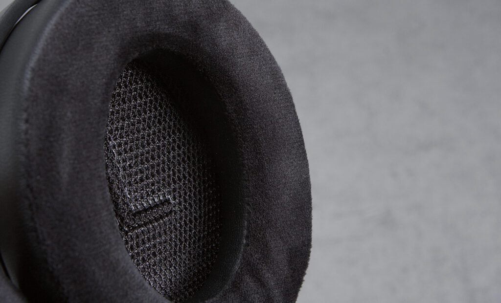 Neben der insgesamt ausgezeichneten Haptik seien die akkurat verarbeiteten Ohrpolster erwähnt. Der Materialmix aus Velours und Kunstleder ist ein interessantes Konzept mit vermutlich hohem Tragekomfort und gleichzeitig guten Dämmeigenschaften.