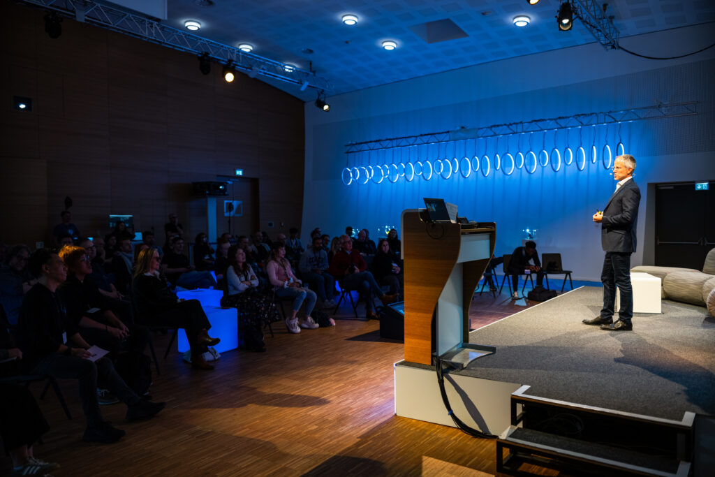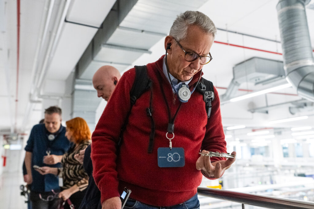 Im Fokus des Feierlichkeit stand natürlich die Sennheiser-Firmengeschichte, über die Andreas Sennheiser zu berichten wusste. Die Historie begann in einem Fachwerkhaus, das heute noch auf dem Firmengelände steht, doch die modernen Produktionshallen überragen diese um ein Weites. Dort ist genug Platz für allerhand Maschinen, zum Beispiel SMD-Bestückungsautomaten und moderne Arbeitsplätze, an denen unter adnerem die Neumann-Mikrofonspinnen und – im klinischen Reinraum – die Kapseln gefertigt werden. Neumann? Ganz recht: Die Firma gehört zu Sennheiser und war daher ebenfalls in die Festivitäten eingebunden.