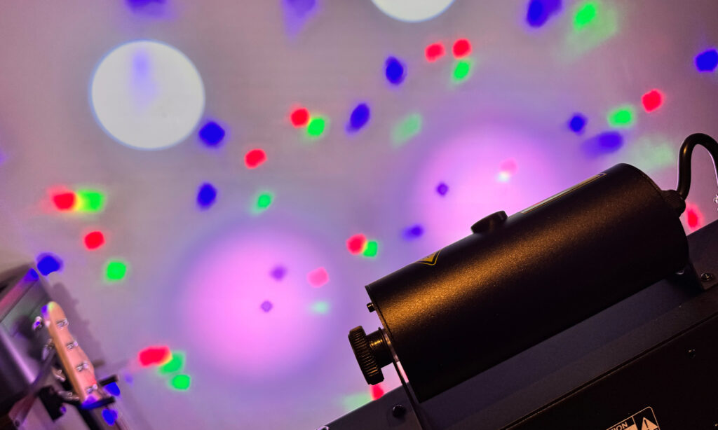 Das Herzstück der Bar bilden zwei Scanner, die mit jeweils einer 15 W starken Weißlicht-LED bestückt sind. In Sachen Optik stehen hier sieben Gobos und acht Farben zur Verfügung, um dynamische Muster in den Raum zu werfen. Außerdem sind zwei Derby-Effekte, die mit 9 W RGB-LEDs für raumfüllende Strahlenbündel sorgen sollen, vorhanden. Für die farbliche Grundstimmung und das klassische Wash-Licht sind zwei PAR-Einheiten zuständig, in denen jeweils drei 9 W RGB-LEDs ihren Dienst verrichten.
