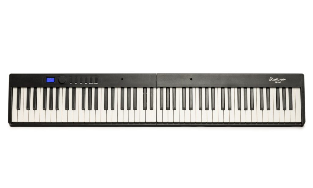 Das Startone FP-90 ist ein günstiges, faltbares Digitalpiano mit 88 Tasten, welches sich vor allem für den mobilen Einsatz eignet. Gerade einmal 4 kg schwer, verfügt das Piano über anschlagdynamische Tasten und bietet neben 128 Klängen auch 128 Rhythmen. Mit dem Akku kann es laut Hersteller zwischen 5 und 8 Stunden lang betrieben werden. Daneben besitzt es eingebaute Lautsprecher und verfügt über eine Bluetooth-Schnittstelle, die Audio und MIDI transportiert. Und das alles für gerade mal knapp 100 €. Wie gut schlägt sich das kompakte Digitalpiano in der Praxis?
