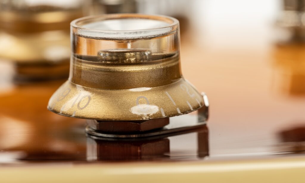 Für die Klangübertragung sind zwei Epiphone ProBucker Humbucker-Pickups im Einsatz, ein ProBucker 2 in der Halsposition und ein ProBucker 3 am Steg. Die Pickups werden mit CTS-Potis geregelt, jeweils einmal Volume und einmal Ton, geschaltet wird mit dem klassischen Dreiweg-Kippschalter. Insgesamt zeigt sich die elektrische Auslegung traditionell: Es gibt keine Coil-Split- oder Coil-Tap-Funktionen und auch bei den Potiknöpfen bleibt man mit den goldenen Top-Hats mit Positionsmarkern (Dial Pointer) aus Nickel beim Gewohnten.