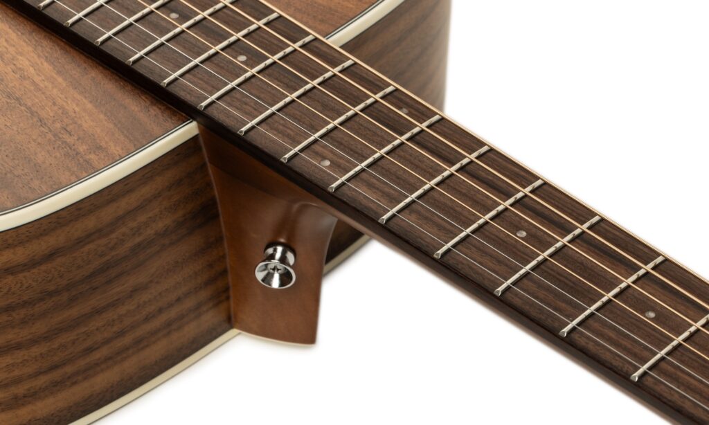 • Wie lauten die Eckdaten Harley Benton CLD-65AE NT? Dreadnought-Bauweise, massive Decke aus Akazie, Boden und Zargen aus Akazie (laminiert), eingeleimter Hals aus Nato mit einem Griffbrett aus Pau Ferro, 649-mm-Mensur, 43-mm-Sattelbreite, HB-03 Preamp und Piezo-Pickup mit integriertem Tuner.