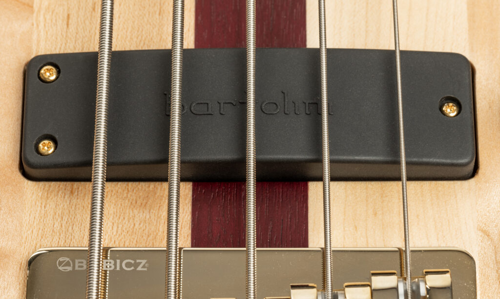 Bereits in den 1980er-Jahren, als sich die Marke Tobias auf dem Markt etablierte, kamen standardmäßig Bartolini-Tonabnehmer und Bartolini-Elektroniken bei den meisten Modellen zum Einsatz. Auch bei der Neuauflage setzt Tobias/Gibson auf die bewährten Produkte des US-amerikanischen Traditionsherstellers. Für den Sound sind zwei Bartolini MT5C Humbucker zuständig, die das Signal an eine 18Volt-Elektronik mit 3-Band-Equalizer von Bartolini namens „NTMB+FL“ schicken. Die Oberseite der Pickups besitzt übrigens einen an die Saitenhöhen angepassten Radius, sodass die Abstände zu dem Strings immer gleich sind. Das war schon bei den UR-Tobias-Bässen so und fühlt sich beim Spielen wirklich ganz ausgezeichnet an!