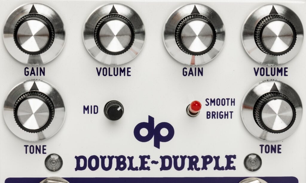 Das Double Durple sitzt im Vergleich zu seinen beiden „Mini-Brüdern“ in einem (BxHxT) 120 x 52 x 100 Millimeter großen Gehäuse und bringt 358 Gramm auf die Waage. Die vom Tone City Blues Man inspirierte rechte Seite verfügt über drei Potis für die Ausgangslautstärke (Volume), den Grad der Verzerrung (Gain) und den Anteil der hohen Frequenzen (Tone). Zusätzlich wurde dem Schaltkreis ein Wahlschalter für zwei Gain-Charkteristika spendiert (Smooth/Bright). Die linke Seite des Double Durple verfügt über die gleichen Bedienelemente und hat anstelle des Bright-Switches ein Mini-Poti zur Regelung der mittleren Frequenzen (Mid). Beide Pedalhälften können unabhängig voneinander oder zusammen betrieben werden und sind intern von rechts nach links in Reihe geschaltet. Die Ein- und Ausgangsbuchsen befinden sich wie der Anschluss für ein Standard-9V-Netzteil an der Stirnseite des Gehäuses und der Stromverbrauch liegt bei 15 mA.