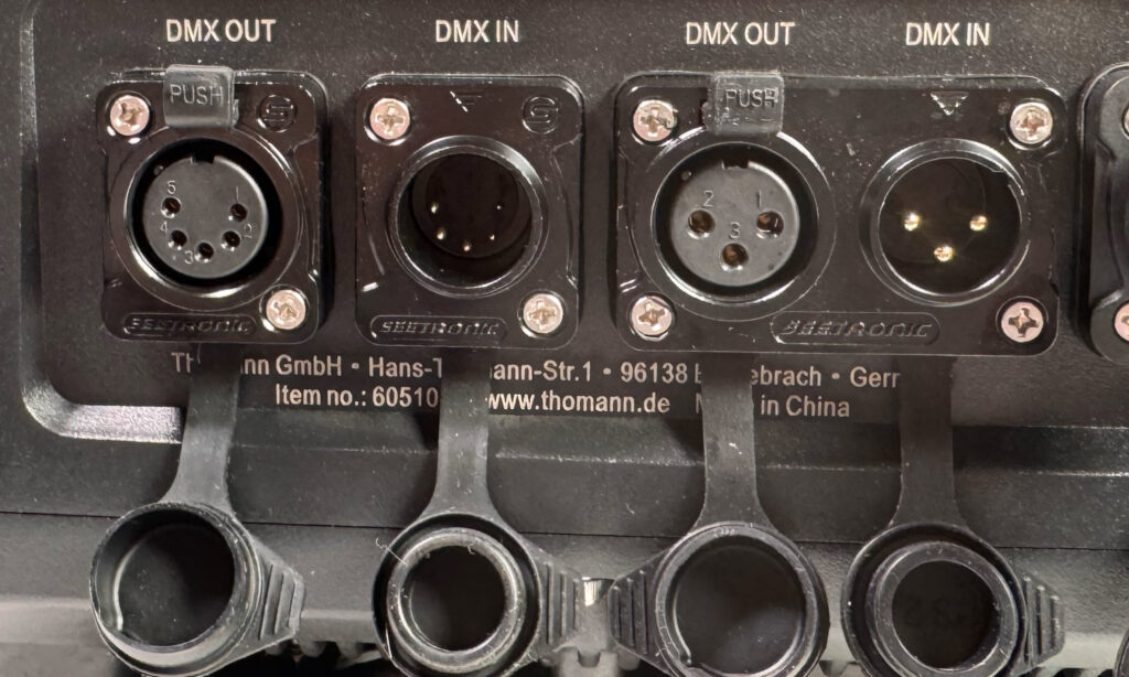 Anschlusstechnisch setzt Varytec auf IP-65-Komponenten: Seetronic Power Twist TR1 für Stromzufuhr und -weiterleitung sowie 3- und 5-polige XLR-Anschlüsse für das DMX-Signal.