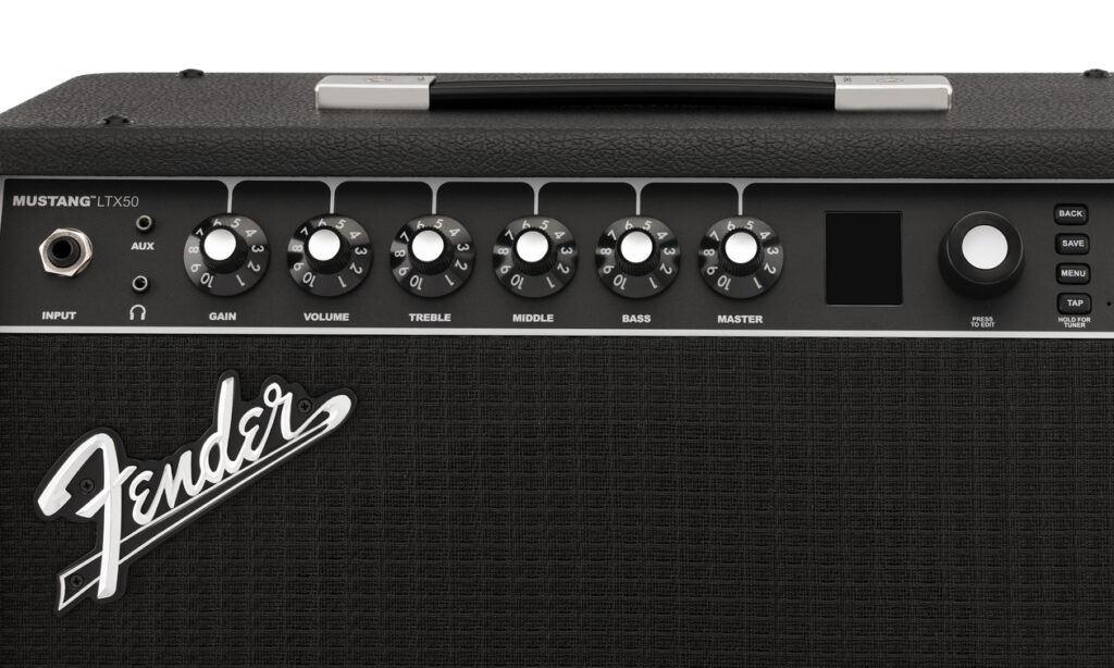 Zuwachs gibt es auch in der Mustang-Verstärkerreihe. Die Modelle Mustang LTX 50 und Mustang LTX 100 haben ein klassisches Retro-Design, setzen aber auf digitale Modeling-Technik. Die günstigen Verstärker sind speicherbar und bieten 100 Speicherplätze für Klänge, die sich aus insgesamt 50 modellierten Verstärker- und Effekttypen rekrutieren und über eine geradlinige Bedienoberfläche justierbar sind. Auch ein Stimmgerät fehlt nicht. Ergänzend ist die Editierung zudem per kostenloser App möglich. Über diese lassen sich auch Playbacks per Bluetooth auf die Verstärker streamen. Beide Verstärker sind mit spezifisch für Fender konzipierten 12″-Celestion-Lautsprechern ausgestattet. Im Mustang LTX 50 arbeitet ein G12P-80, im Mustang LTX 100 ein G12FSD-100. Optional bietet Fender einen passenden Fußschalter mit fünf Tasten für den Live-Betrieb an. Mit dessen Hilfe lassen sich neben Presets auch die individuellen Effektbereiche aktivieren/deaktivieren.