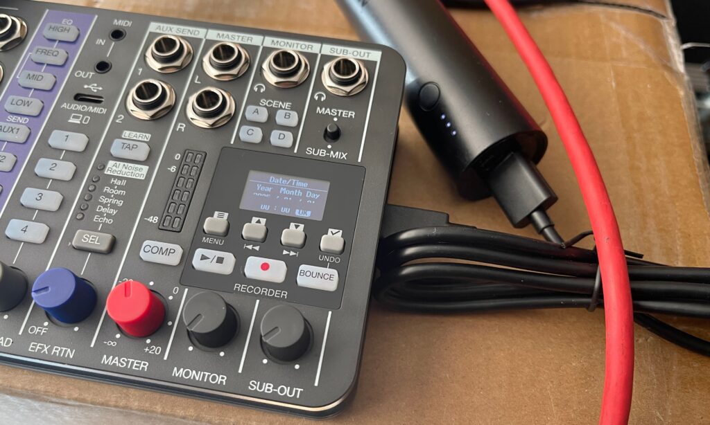 Für Solo-Künstler und kleine Ensembles ist er ein idealer Begleiter. Ein Mixer, Recorder und Audiointerface in einem Gerät, das in jeden Rucksack passt und auch mit Batteriebetrieb funktioniert.