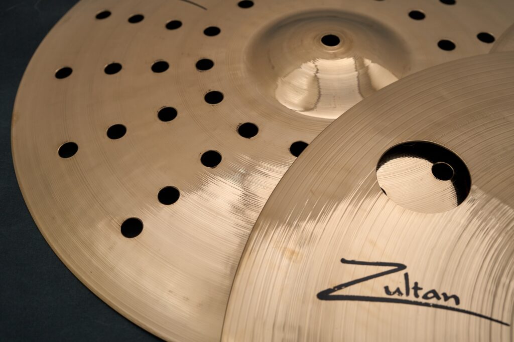 Einen Großteil der Lieferung machen jedoch die gelochten Becken aus. Da wären zunächst die Trash-Modelle, die sich durch viele kleine, strahlenförmig angeordnete Bohrungen auszeichnen. Hier gibt es 16“ und 18“ Trash Crashes und ein 16“ Trash China. Als klangliche Alternative bietet Zultan die Holey-Varianten an. Die basieren auf den gleichen Modellen, weisen aber nur jeweils sechs große Bohrungen auf. Davon stehen heute ein 19“ Holey Crash und ein 16“ Holey China zum Review bereit.